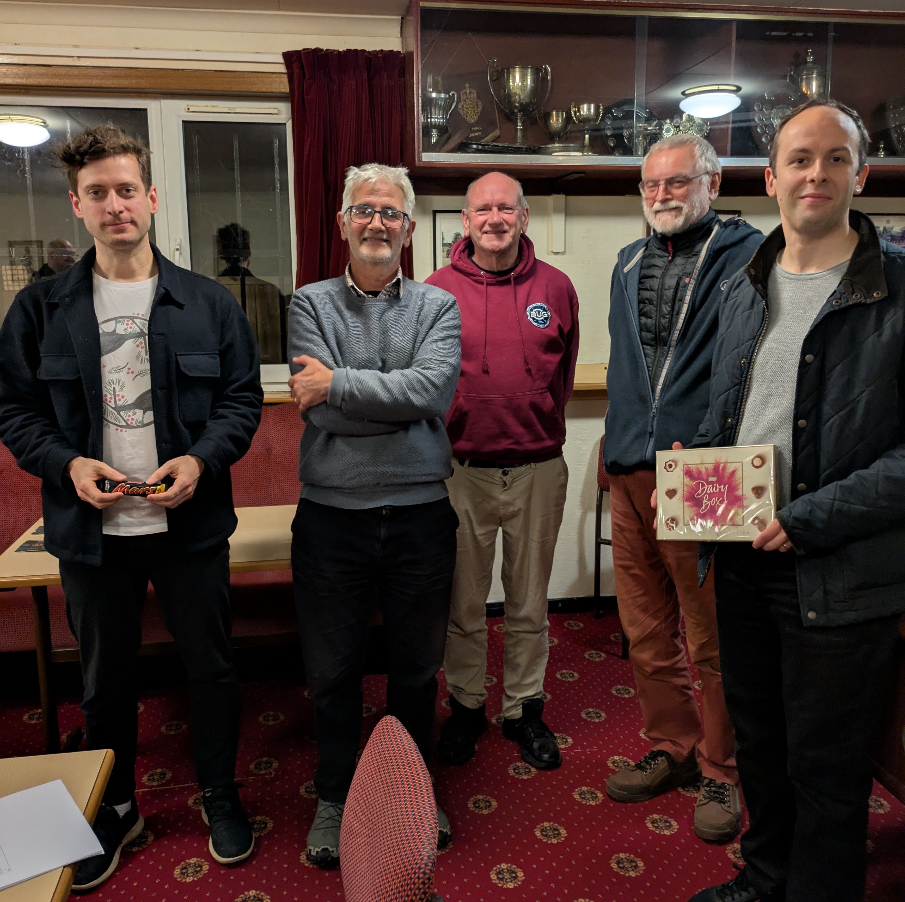 Dominic Pearce (left), Brendan Cornes, Chris Donkin (organiser), David Begg, and David New.